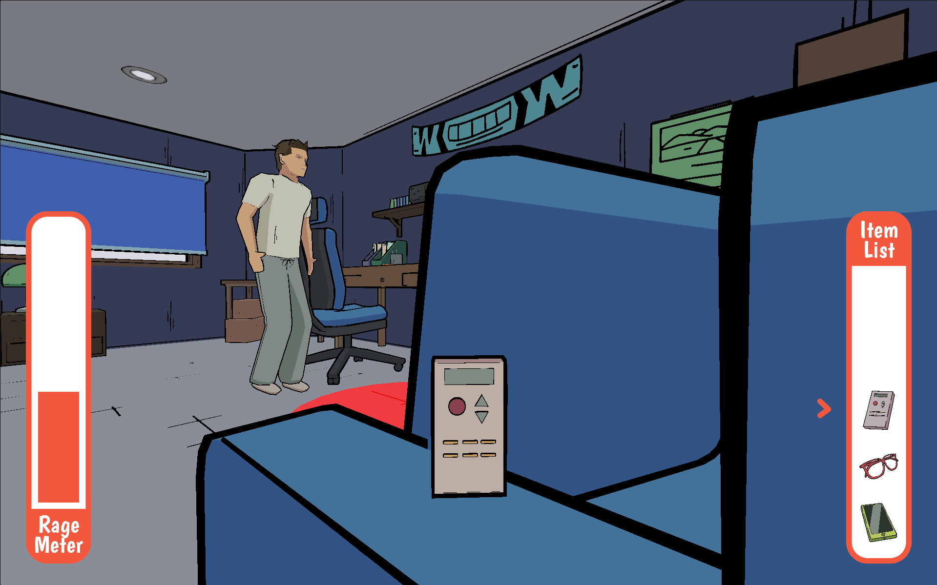 When our good-fellow Jobly's stuck on a sad set of routine habits, it is your duty as his belongings to ragebait him! Control objects which Jobly uses in his routine! approach them and get them out of Jobly's sight so he can't use them!